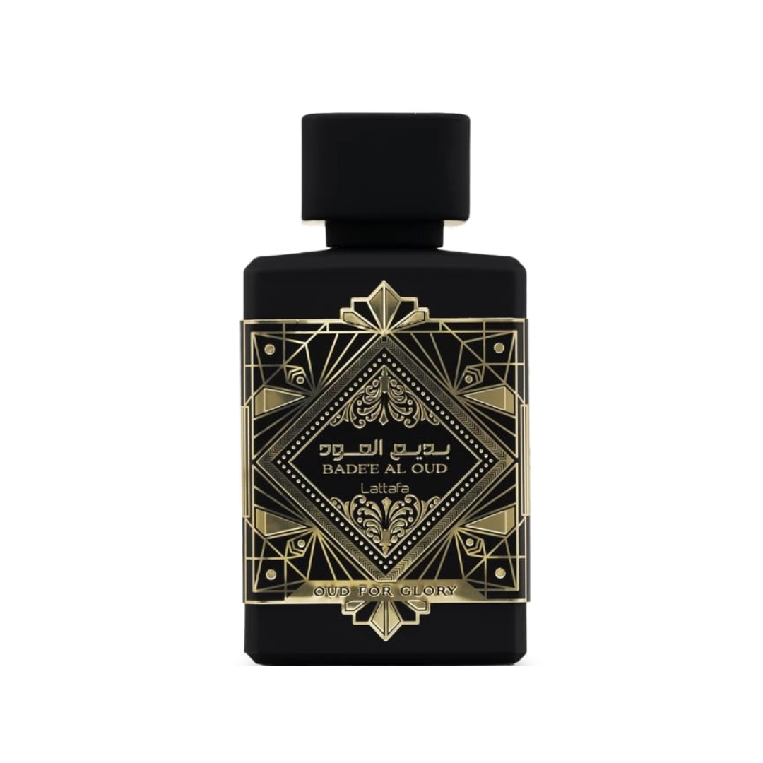 Badee Al Oud Oud For Glory – Lattafa es una fragancia intensa y sofisticada, reconocida por su perfil amaderado-oud con un carácter elegante y potente.
