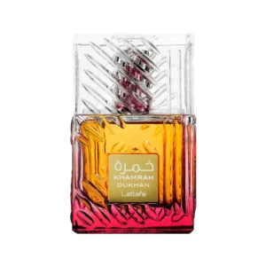 Khamrah Dukhan – Lattafa es una interpretación más intensa y ahumada dentro del estilo gourmand oriental, con un carácter profundo y nocturno. Es una fragancia para quienes buscan un perfume dulce, pero con un toque más oscuro y misterioso.